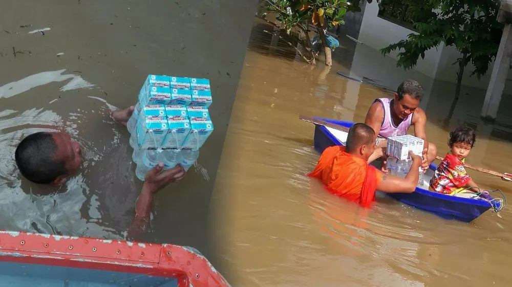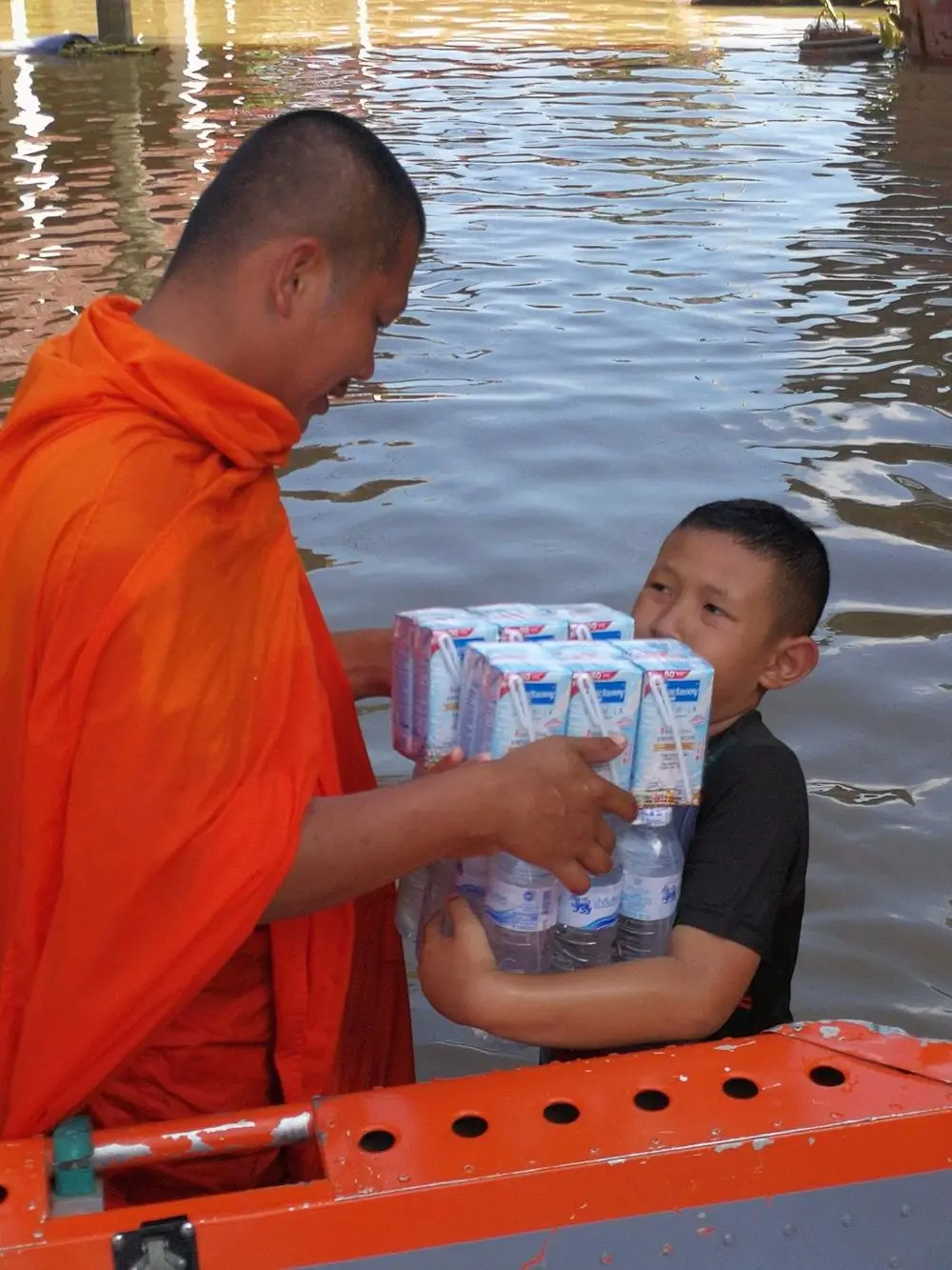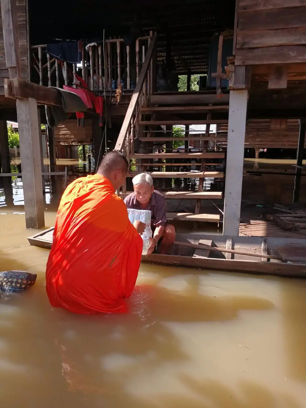 ยามปกติโยมใส่บาตรให้พระได้มีข้าวฉันท์ ยามนี้ต้องแบ่งปันเมื่อพวกท่านประสบภัย