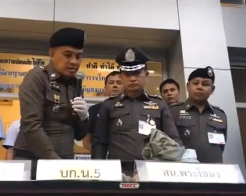 พล.ต.ท. ศานิตย์ มหถาวร ผู้บัญชาการตำรวจนครบาล (ผบช.น.) พร้อมด้วย พล.ต.ต.มงคล วรุณโณ ผู้บังคับการตำรวจนครบาล 5 (ผบก.น.5) พ.ต.อ.ชนิน วชิรปาณีกูล ผกก.สน.พระโขนง, พ.ต.อ.ธีรศักดิ์ ภิญโญ ผกก.สส.บก.น.5, พ.ต.ต.นิธิ ตรีสุวรรณ สว.กก.สส.บก.น.5 และฝ่ายสืบสวน สน.พระโขนง ร่วมกันแถลงผลจับกุม นายไอซ์ อายุ 19 ปี และนายเอ (นามสมมุติ) อายุ 16 ปี ผู้ต้องหาตามหมายจับศาลจังหวัดพระโขนง เลขที่ จ.404/2560 และ จ.405/2560 ลงวันที่ 2 สิงหาคม 2560