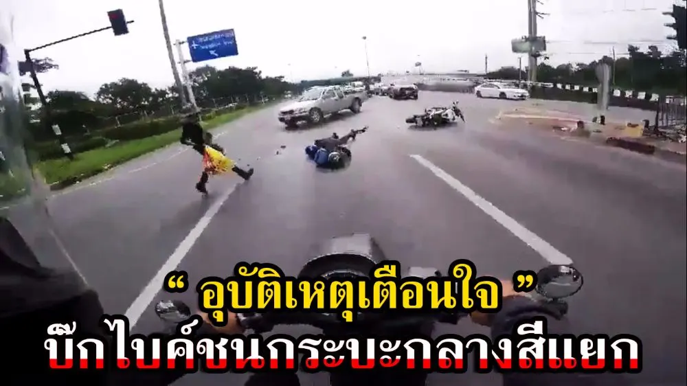 อุบัติเหตุเตือนใจ | บิ๊กไบค์ วินาทีมอไซค์ชนกระบะกลางสี่แยก