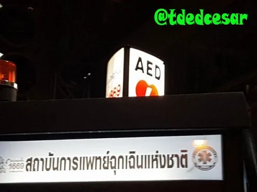 หน้าเมเจอร์เอสพลานาดแคราย เหมือนเขากำลังติดตั้ง "ตู้โทรศัพท์ช่วยชีวิต" อยู่ ยังไม่เสร็จเรียบร้อยดี ในตู้มีทั้งระบบติดต่อแจ้งเหตุ มีเครื่อง AED ดูแล้วน่าจะมีวงจรปิดติดต่อกับเจ้าหน้าที่ในยามฉุกเฉิน ในหน่วยต่างๆได้ด้วย ข้างบนมีป้าย hero box และ บริษัททีโอที จำกัดมหาชน น่าจะเป็นโปรเจคต์ร่วมกับสถาบันการแพทย์ฉุกเฉินแห่งชาติ ที่ดัดแปลงตู้โทรศัพท์เดิม ที่ไม่ค่อยได้ใช้งานกันแล้วมาเป็น ตู้ไฮเทค ช่วยชีวิตคนในยามฉุกเฉินได้