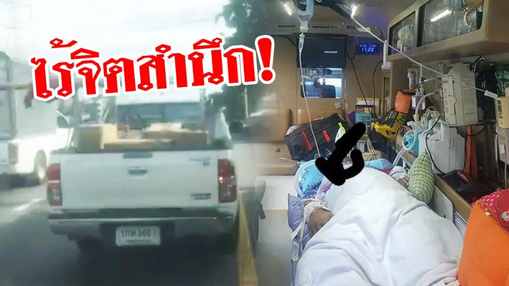 ไร้จิตสำนึก? กระบะไม่หลบรถพยาบาลที่มีผู้ป่วยอาการโคม่า แถมด่าทอเจ้าหน้าที่อีก