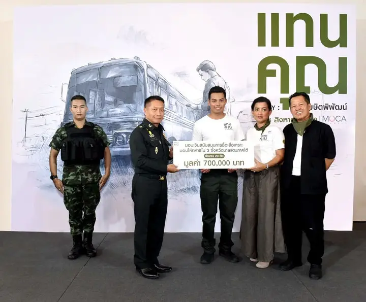 ศาสตรเมธี ดร.เฉลิมชัย โฆษิตพิพัฒน์ ศิลปินแห่งชาติ กนกวัลย์ โฆษิตพิพัฒน์ และแทน โฆษิตพิพัฒน์ เจ้าของหนังสือเล่มแรกในชีวิต “แทน คุณ” ร่วมมอบรายได้จากการจำหน่ายหนังสือให้กับ พลโท ธเนศ กาลพฤกษ์ เจ้ากรมกิจการพลเรือนทหารบก เพื่อนำไปจัดซื้อเสื้อเกราะมอบให้แก่ทหารใน 3 จังหวัดชายแดนภาคใต้ และมอบเงินอีกส่วนหนึ่งให้แก่กองพันทหารราบที่ 3 กรมทหารราบที่ 17 (ในพระองค์ฯ) และกองร้อยมณฑลทหารบกที่ 37 จ.เชียงราย เพื่อใช้เป็นเงินสวัสดิการทหารกองประจำการในรุ่นต่อไป ณ พิพิธภัณฑ์ MOCA Bangkok