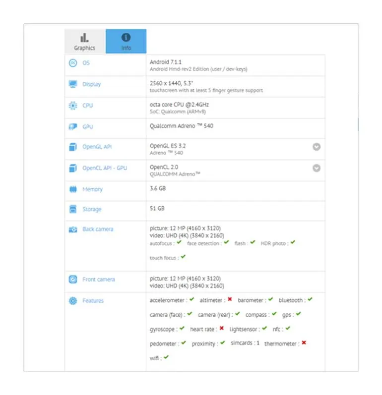 ข้อมูลล่าสุดที่มีออกมาให้เห็นกันนั้นมีรายชื่อของสมาร์ทโฟน Nokia 9จำนวน 3 รุ่นย่อย ที่มาพร้อมกับรหัส TA-1004, TA-1012 และ TA-1052 ปรากฏอยู่บน อยู่บนฐานข้อมูลของ GFXBench ซึ่งเป็นแหล่งทดสอบประสิทธิภาพสมาร์ทโฟนชื่อดัง โดบข้อมูลดังกล่าวเผยให้เห็นสเปกของ Nokia 9 ที่ระบุว่าจะมาพร้อมกับ หน้าจอแสดงผลขนาด 5.3 นิ้ว ความละเอียด 2560 x 1440 พิกเซล ชิปเซ็ต Qualcomm Snapdragon 835 แรมขนาด 4GB ความจุภายในอยู่ที่ 64GB พร้อมด้วยกล้องถ่ายภาพด้านหลังแบบคู่ ความละเอียด 12 ล้านพิกเซล รองรับการถ่ายวิดีโอระดับ 4K กล้องหน้าก็มีความละเอียด 12 ล้านพิกเซลเช่นเดียวกัน และรันบน ระบบปฏิบัติการ Android 7.1.1 Nougat มาตั้งแต่แกะกล่องกันเลยทีเดียว