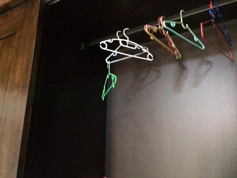 ตู้เสื้อผ้า และไม้แขวนเสื้อ ที่ไร้คนใช้งาน