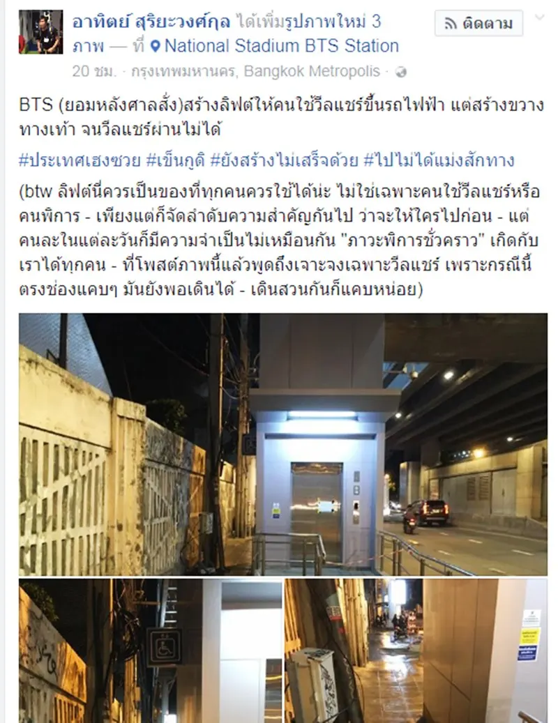BTS (ยอมหลังศาลสั่ง)สร้างลิฟต์ให้คนใช้วีลแชร์ขึ้นรถไฟฟ้า แต่สร้างขวางทางเท้า จนวีลแชร์ผ่านไม่ได้