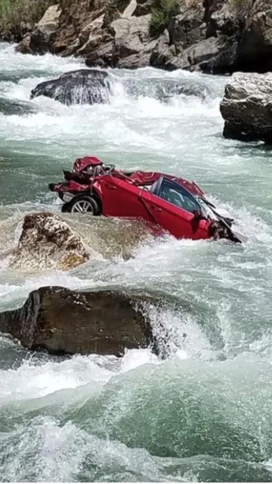 นี่คือภาพล่าสุดที่ตำรวจเมืองเฟรชโน่ถ่ายมาได้ ซึ่งเป็นรถเช่าของสองนักเรียนไทยที่ขับตกเหว จะเห็นได้ว่าน้ำยังเชี่ยวมากเนื่องมาจากหิมะที่ละลายมาจากยอดเขา