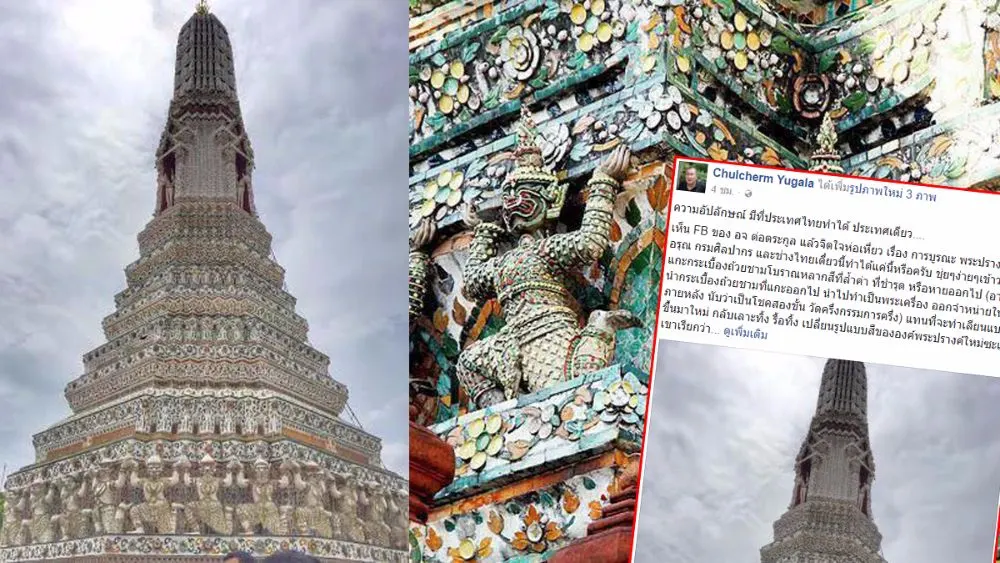 15 สค. 60 ม.จ.จุลเจิม โพสต์ Facebook ติงการบูรณะ พระปรางค์วัดอรุณ สุดชุ่ย!? โดยได้โพสท์ระบุว่า