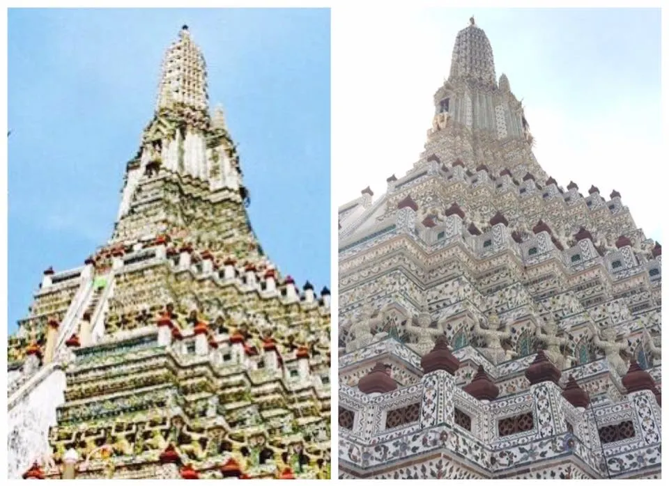ทำแบบนี้ ทำไมครับ ? ใครรู้ช่วยตอบที หรือเป็นกรรมของลูกหลาน คนไทย ที่มีคนคิดและทำแบบนี้กับศิลปะอันล้ำค่า ที่ประเมินค่ามิได้ของประเทศชาติ แต่ประชาชนคนไทยก็ยังโชคดีหน่อย ที่ทางการไม่ทุบทิ้งองค์พระปรางค์ แล้วสร้างขึ้นใหม่ เพราะไม่มี กระเบื้องถ้วยชามโบราณหลากสีที่ล้ำค่า มาซ่อมแซมบูรณะใหม่