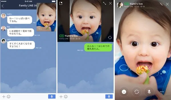 LINE ในเวอร์ชันล่าสุด 7.9.0 ได้เพิ่มคุณสมบัติใหม่ โดยในกลุ่มหรือห้องสนทนาที่มีหลายคน สามารถเลือก Live เพื่อถ่ายทอดวิดีโอให้คนในห้องชมพร้อมกันได้ ซึ่ง LINE ยกตัวอย่างสถานการณ์ที่น่าใช้งาน อาทิ คุยกับเพื่อนพร้อมถ่ายทอดสดการแข่งกีฬา หรือกลุ่มไลน์ครอบครัวโชว์สมาชิกใหม่