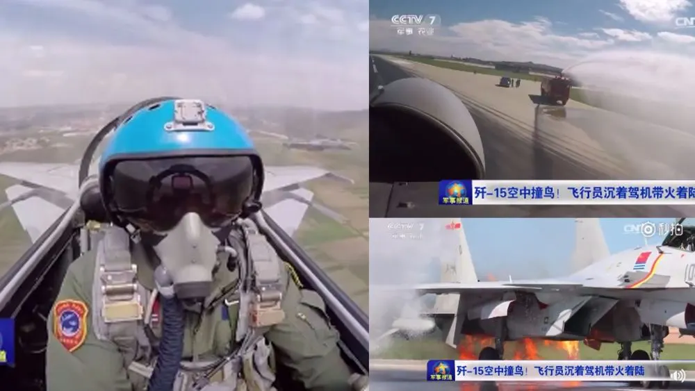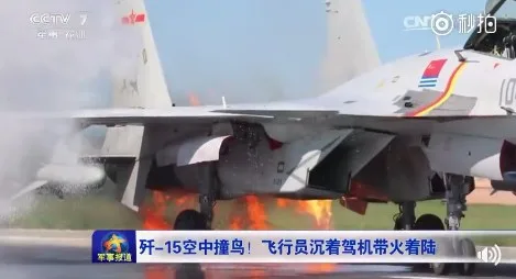 เมื่อเร็วๆ นี้ นายพล หยวนเหว่ย รองกัปตันของกองบินหน่วยหนึ่งแห่งกองทัพเรือของจีน ได้ขับเครื่องบินขับไล่ J-15 บินชนฝูงนกขณะกำลังฝึกบิน ทำให้เครื่องยนต์ฝั่งซ้ายเกิดไฟลุกท่วมขึ้นอย่างกะทันหัน