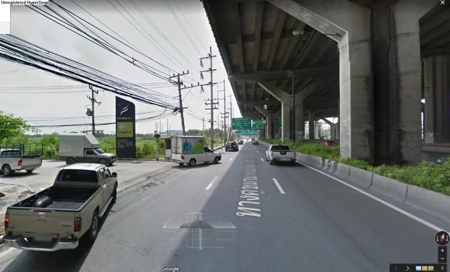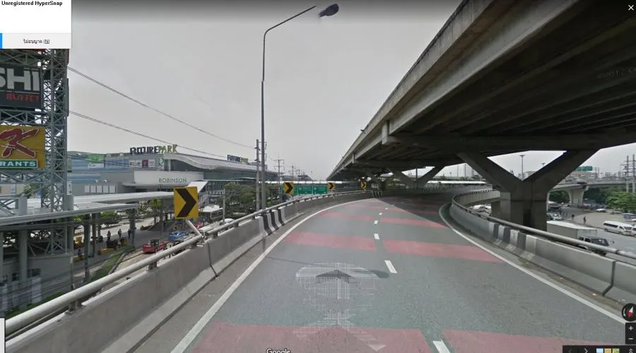 ข้ามสะพานแล้ว เห็นฟิวเจอร์ปาร์คอยู่ซ้ายมือ สภาพสะพานเหมือนจะตรงยาว ก็ถูกตามหลักแผนที่เราต้องตรงไป...