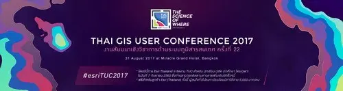 บริษัท อีเอสอาร์ไอ (ประเทศไทย) จำกัด ผู้นำด้านการดำเนินธุรกิจทางด้านภูมิสารสนเทศแบบครบวงจร อันดับหนึ่งในประเทศไทยและกลุ่มประเทศอาเซียนในเขตอนุภูมิภาคลุ่มแม่น้ำโขง และตัวแทนจัดจำหน่ายผลิตภัณฑ์ภูมิสารสนเทศชั้นนำภายใต้ชื่อ ArcGIS จากประเทศสหรัฐอเมริกา ขอเชิญผู้ประกอบการ นักธุรกิจ และผู้สนใจเข้าร่วมงานสัมมนาเชิงวิชาการระบบสารสนเทศทางภูมิศาสตร์ ครั้งที่ 22 หรือ TUC: Thai GIS User Conference 2017 ภายใต้แนวความคิด “The Science of Where for Thailand 4.0” จัดขึ้นเพื่อนำเสนอศักยภาพ แนะนำ และส่งเสริมความรู้ความเข้าใจเกี่ยวกับเทคโนโลยีระบบสารสนเทศภูมิศาสตร์ (GIS) และงานสำรวจอย่างครบวงจร พร้อมแนะนำ Software Solutions ล่าสุดที่จะช่วยเพิ่มศักยภาพการใช้ข้อมูลอย่างเต็มประสิทธิภาพเพื่อการก้าวสู่ยุค Digital Transformation นอกจากนี้จะมีการนำเสนอโซลูชั่นต่างๆ สำหรับประยุกต์ใช้ในธุรกิจและองค์กรทั้งภาครัฐ ภาคเอกชนและกลุ่มอุตสาหกรรมหลากหลายประเภท ผ่านเทคโนโลยี GIS ซึ่งครอบคลุมการทำงานทุกรูปแบบทั้ง Desktop Application, Web Application, Mobile Application ฯลฯ