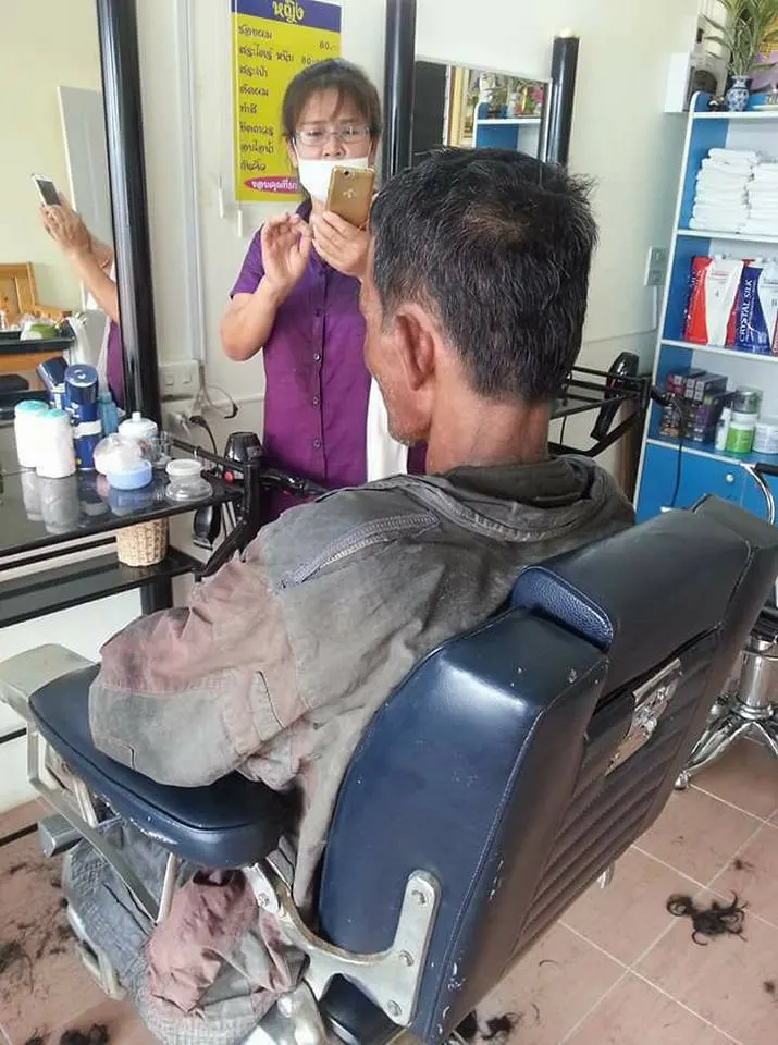 ประทับใจ!! เจ้าของร้านใจดีตัดผมฟรีให้กับ ชายสติไม่ดีคนนี้