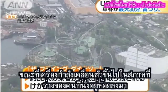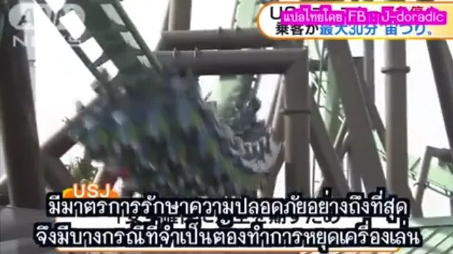 เสียวสุดที่ USJ เมื่อเครื่องเล่นหยุดในขณะที่คนเล่นห้อยตัว!