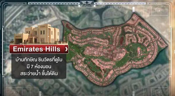 วันที่ 28 สิงหาคม 2560 อมรินทร์ ทีวี ได้เผยภาพคฤหาสน์ของ ทักษิณ ชินวัตร ที่ตั้งอยู่ในหมู่บ้านสุดหรูเอมิเรตส์ ฮิลล์ส (Emirates Hills) ตั้งอยู่ในสนามกอล์ฟ ริมทะเลดูไบ ใกล้กับเกาะปาล์มจูไมราห์ (The Palm Islands) ซึ่งสื่อนอกจับตามองว่า น.ส.ยิ่งลักษณ์ ชินวัตร อาจเดินทาง โดยมีรายงานเพิ่มเติมว่า บ้านในหมู่บ้านนี้ราคาเริ่มต้นประมาณ 50 ล้านบาท มี 3 ห้องนอน ส่วนบ้าน ทักษิณ ชินวัตร เป็นวิลล่าขนาด 7 ห้องนอน มีชั้นใต้ดิน สระว่ายน้ำ และลิฟต์ ซึ่งบ้านขนาด 7 ห้องนอนในเอมิเรตส์ ฮิลล์ ซื้อขายกันที่ราคาตั้งแต่ 300 ล้านบาท จนถึง 1,000 ล้านบาทมาพักที่นี่