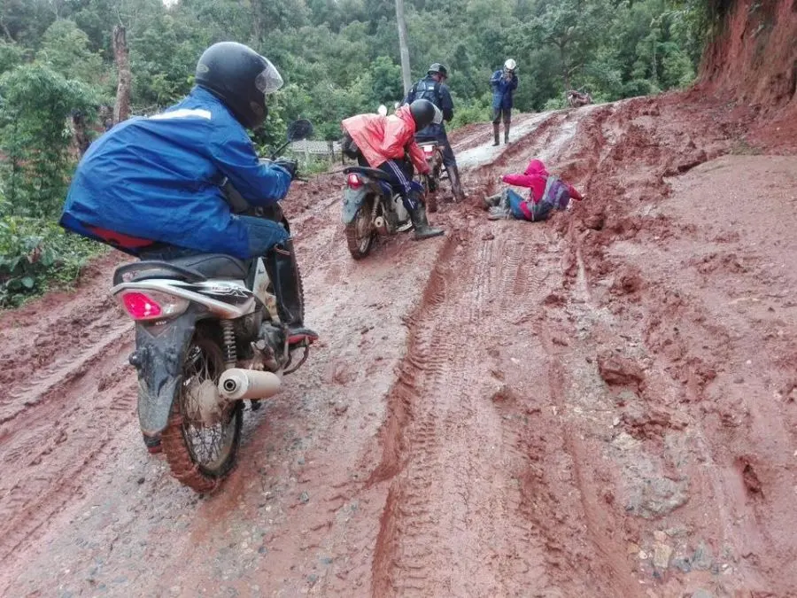 สภาพเส้นทางเดินทางไปแข่งขันฯ ของเด็กๆและครูที่อมก๋อย