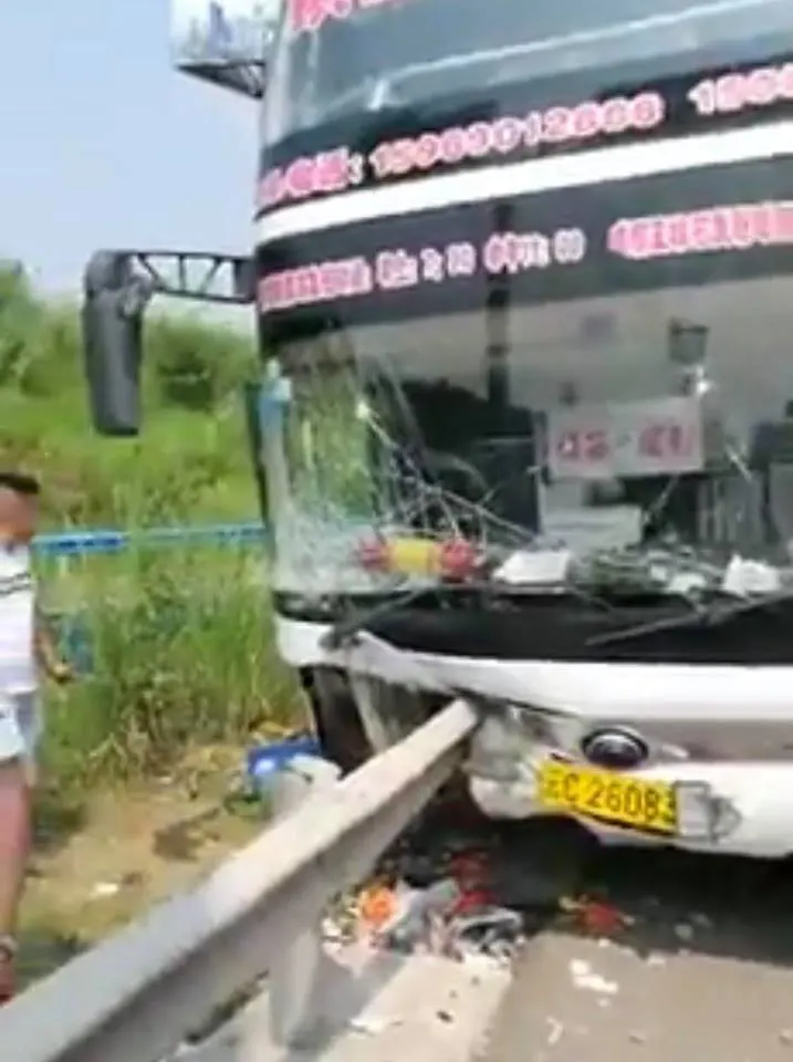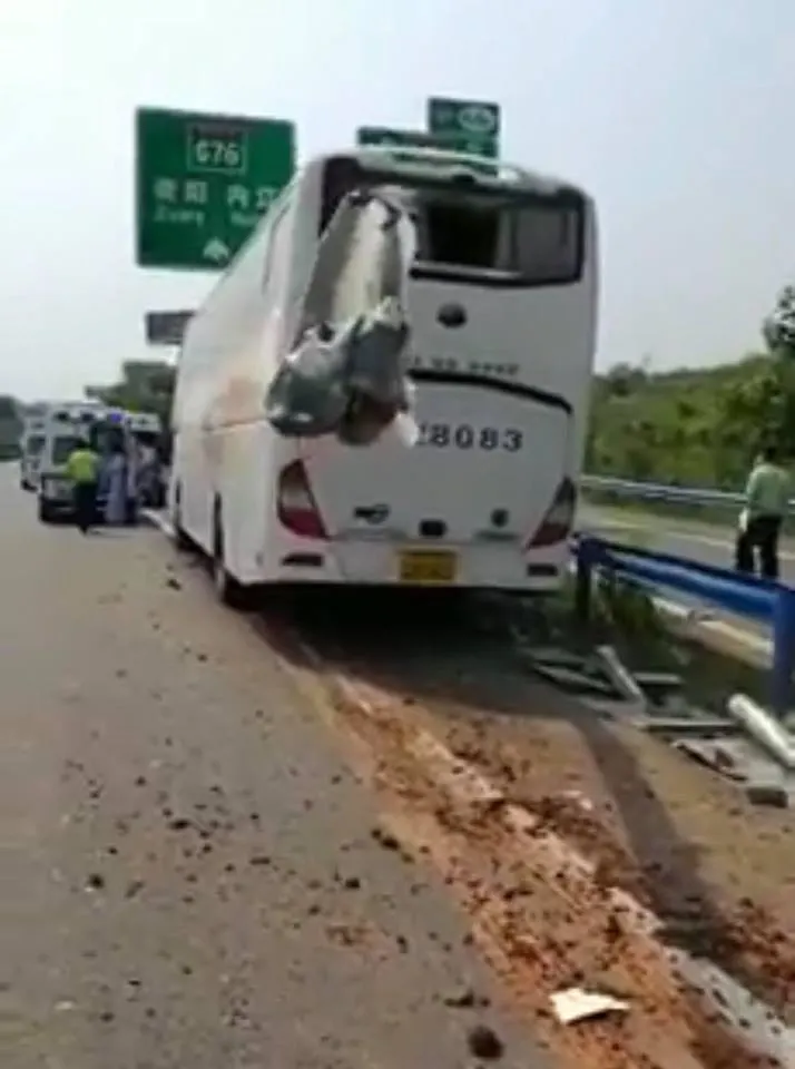 เป็นเหตุการณ์จริงที่เกิดขึ้นในประเทศจีน ซึ่งเหตุการณ์ที่เห็นในคลิปนั้นมีเหล็กกั้นขอบทางได้เสียบทะลุรถบัสไปจนถึงท้ายรถ