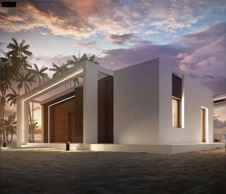 ทุกวันนี้บ้านโมเดิร์นจัดว่าเป็นที่นิยมกันมากๆ โดยเฉพาะคนรุ่นใหม่ที่ชื่นชอบความทันสมัย วันนี้เราก็มีอีกหนึ่งหลังที่โมเดิร์นน่าอยู่มาฝากกันครับ นี่คือแบบบ้านสมัยใหม่ที่มาในสไตล์โมเดิร์น โครงสร้างหลักเป็นงานคอนกรีต ออกแบบมาในรูปทรงสี่เหลี่ยมง่ายๆ แต่โดดเด่นด้วยการตกแต่งภายนอก มีเฉลียงภายนอกขนาดใหญ่ ใช้โทนสีขาว เทาและไม้ตกแต่งเพิ่มเติม ให้อารมณ์ความสวยงามที่ไม่เหมือนใคร