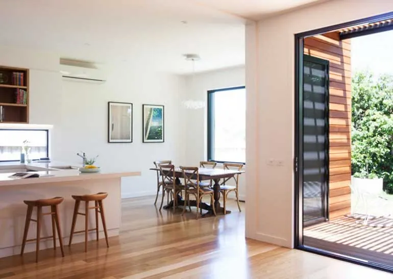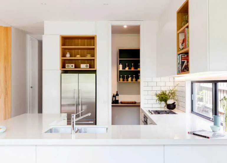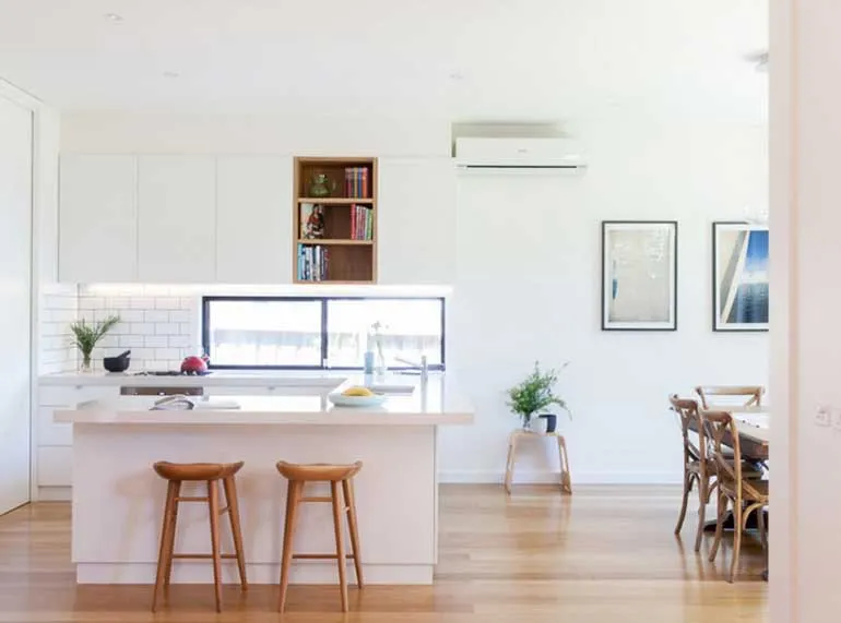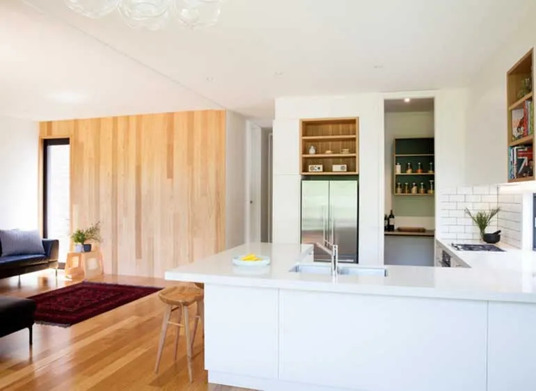 ส่วนภายในบ้านนั้นตกแต่งในสไตล์โมเดิร์น โดดเด่นด้วยงานไม้และผนังสีขาวที่ดูสะอาดตาลงตัวสุดๆ ทำให้ตัวบ้านดูโล่งและใหญ่ขึ้น แม้จะอยู่บนพื้นที่จำกัดแต่ก็จัดว่าหลายอย่างได้ลงตัวมากๆ ทั้งห้องครัว ห้องนั่งเล่น ห้องเก็บของ และส่วนอื่นๆ ที่ทำให้บ้านหลังนี้น่าอยู่เอามากๆ