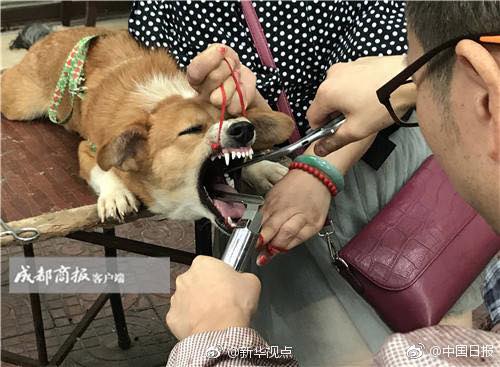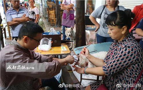 มีผู้เลี้ยงสุนัขจำนวนไม่น้อยที่อยากเลี้ยงสัตว์แต่กลัวว่าเสียงของมันจะไปรบกวนคนอื่น จึงตัดสินใจพาสุนัขมาตัดเส้นเสียง โดยในภาพเป็นภาพร้านในตลาดแห่งหนึ่งของเมืองเฉิงตูที่รับตัดเส้นเสียงของสุนัขโดยเฉพาะ ซึ่งก็มีผู้เลี้ยงสุนัขแวะเวียนมาใช้บริการ