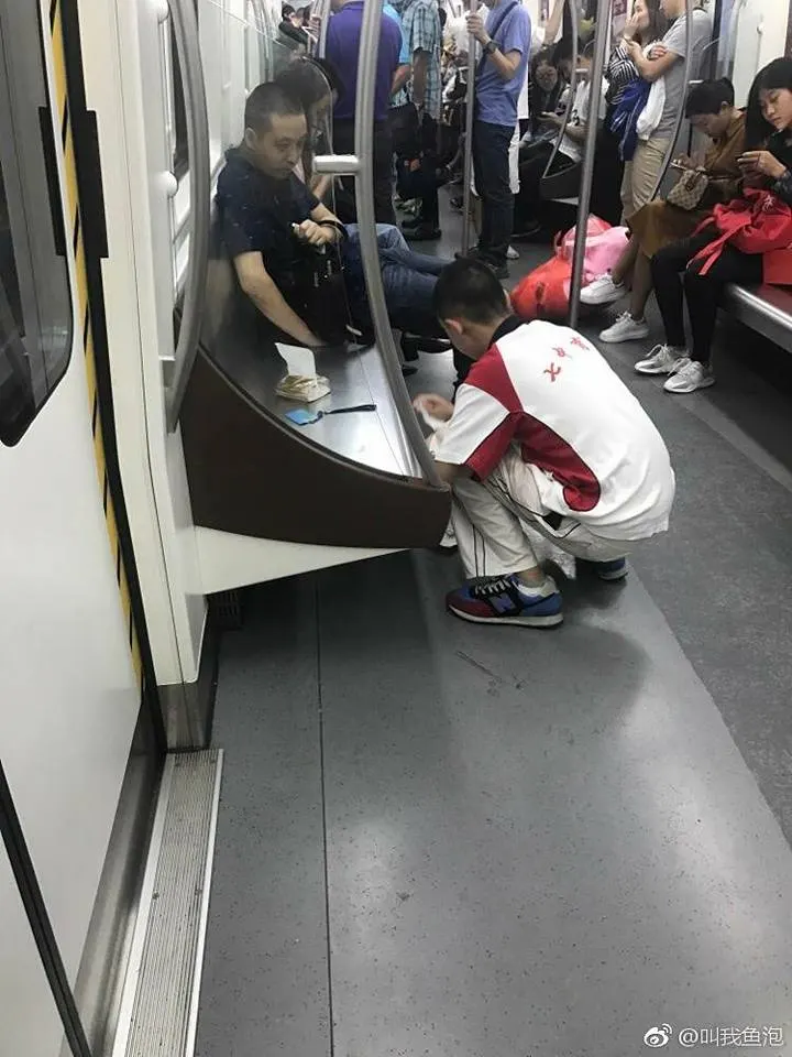 เหตุการณ์นี้ถูกบันทึกภาพและบอกเล่าโดย ผู้ใช้ Weibo นามว่า "叫我鱼泡" ที่ขึ้นรถไฟใต้ดินและเห็นเหตุการณ์เข้าพอดี ซึ่งเกิดขึ้นเมื่อวันที่ 15 กันยายนที่ผ่านมา โดยสันนิษฐานว่า "เหตุที่พ่อถ่มน้ำลายลงพื้น เนื่องจากเพิ่งกลับจากงานเลี้ยง ดื่มเหล้่ามากเกินไป"