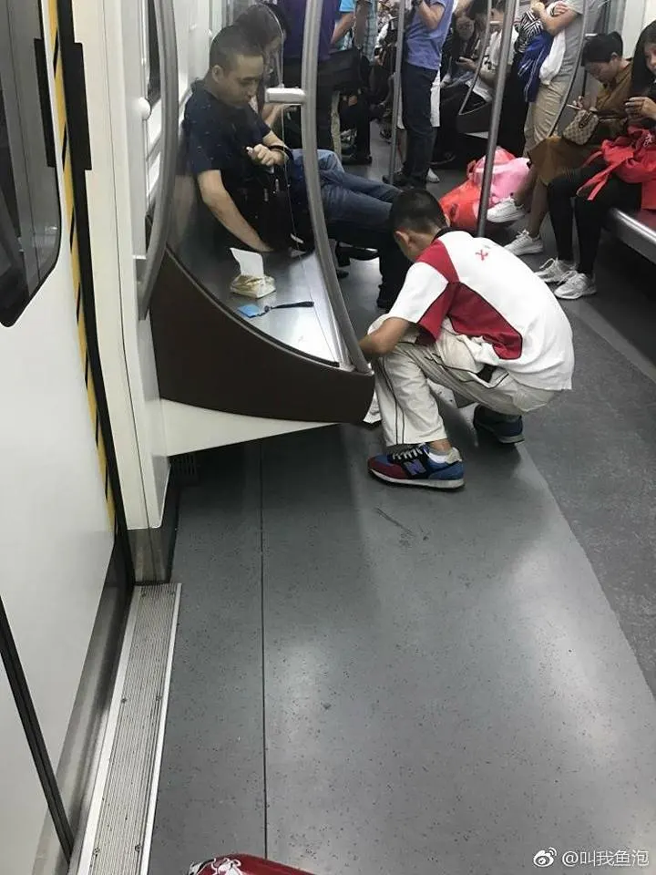 เด็กชายชาวจีนคนหนึ่งนั่งรถไฟใต้ดินเมืองเฉิงตูกับพ่อ เมื่อพ่อถ่มน้ำลายลงพื้น ลูกชายเห็นว่าไม่เหมาะสมจึงรีบก้มลงเช็ดพื้น และเมื่ิอมีคนแถวนั้น ส่งกระดาษทิชชูให้ ก็ยิ้มและขอบคุณอย่างอ่อนน้อม