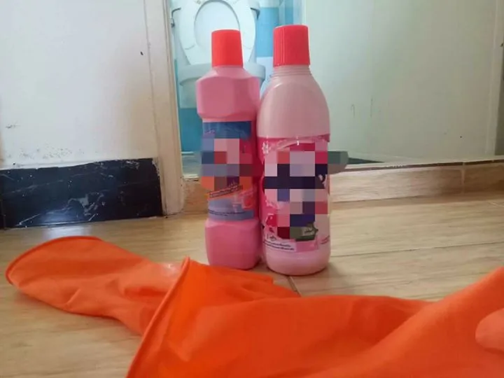 อันนี้ไม่ใช่ความผิดสารเคมีนะ คือเจ้าของโพส พลาด หยิบน้ำยาซักผ้าขาว ที่มี NaOCl มาเทพื้น นึกว่าเป็นน้ำยาขัดพื้น พอรู้ตัวว่าหยิบน้ำยาผิดขวด เขาก็หยิบน้ำยาขัดพื้นที่มี HCl เป็นองค์ประกอบไปเทพื้นต่อ