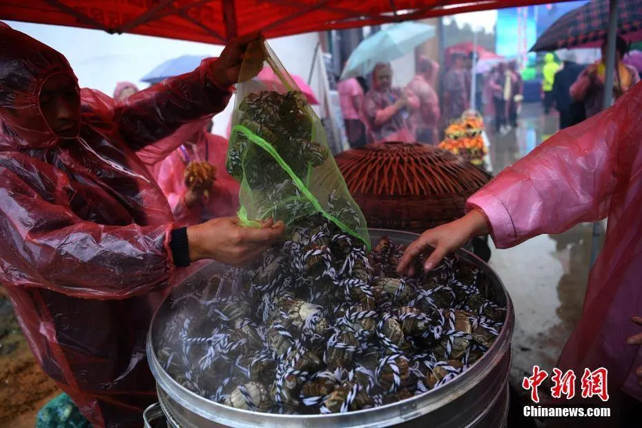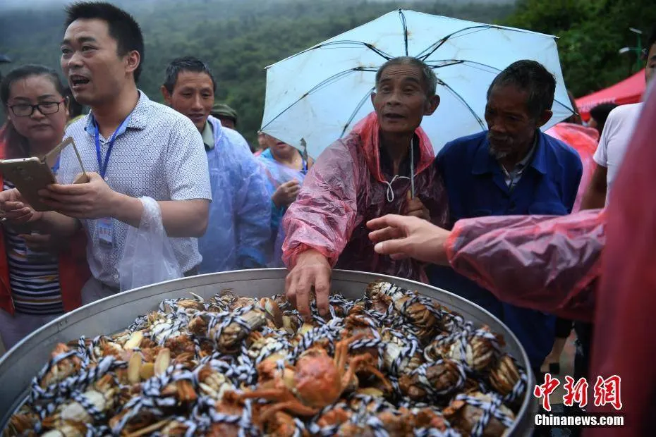 ประชาชนและนักท่องเที่ยวตบเท้าร่วมงานเลี้ยงที่มีเมนูหลักเป็นปูสดใหม่จากฟาร์มท้องถิ่นเขตอู่หลง นครฉงชิ่งทางตะวันตกเฉียงใต้ของจีน เมื่อวันที่ 20 ก.ย. โดยบรรดาเจ้าของฟาร์มหลายสิบแห่งได้ขนเอาปูสดกว่าหนึ่งพันตัวมาจัดจำหน่าย พร้อมกับจัดการประกวด “ราชาปู” เพื่อค้นหาสุดยอดปู ซึ่งจัดเป็นอาหารที่ได้รับความนิยมอย่างมากในช่วงฤดูใบไม้ร่วงของจีน