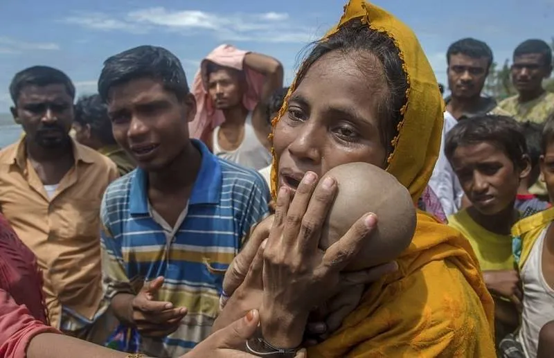 หญิงชาวมุสลิมโรฮิงญาต้องตกอยู่ในอาการใจสลายขณะกอดจูบร่างไร้วิญญาณของลูกในไส้ ที่สูญสิ้นชีวิตจากเหตุเรืออพยพอับปางกลางน่านน้ำใกล้กับบังกลาเทศ ซึ่งเป็นจุดหมายปลายทางของสองแม่ลูก เมื่อไม่นานนี้ โดยภาพดังกล่าวได้รับการบันทึกไว้โดยช่างภาพนามว่า ดาร์ ยาซิน