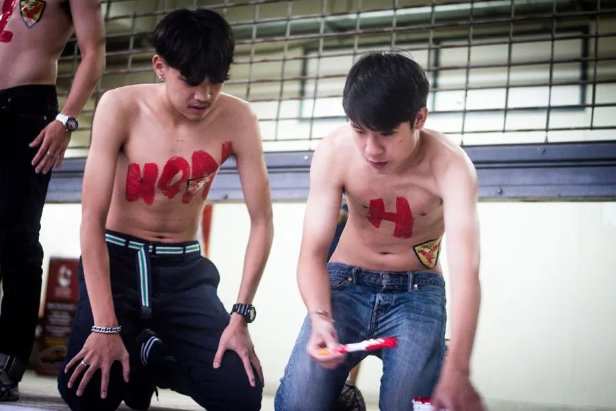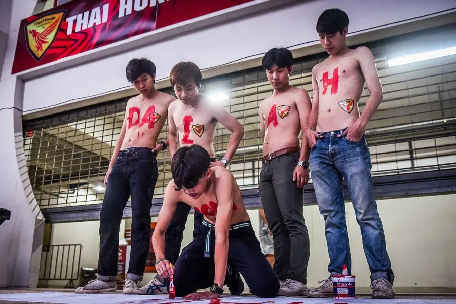 หนุ่มๆ วิศวะ สถาบันเทคโนโลยีพระจอมเกล้าเจ้าคุณทหารลาดกระบัง อุตส่าห์ตั้งใจมาดูบอล และ เตรียมทำป้ายให้กำลังใจทีม ไทยฮอนด้า ลาดกระบัง เอฟซี กันเต็มที่ แต่ฝนเจ้ากรรมเทไม่หยุด เอ้า นัดหน้ามาใหม่