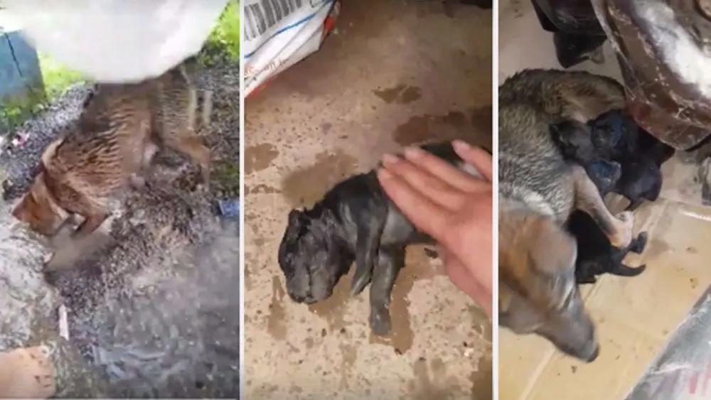 คลิปสุดประทับใจ แม่หมาช่วยขุดหลุม เพื่อนำลูกออกจากหลุมที่มีน้ำขัง
