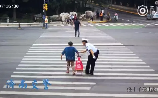 เมื่อไม่นานมานี้ ที่สี่แยกแห่งหนึ่งในเมืองจี้หนาน มณฑลซานตง มีคุณป้าสูงวัยคนหนึ่งพยายามจะข้ามถนนทั้งๆ ที่สัญญาณไฟข้ามถนนยังเป็นสีแดง เมื่อตำรวจจราจรท่านหนึ่งเห็นเข้า จึงเข้าไปห้ามไว้ด้วยท่าทีที่สุภาพ โดยตลอดเวลาที่คุยตำนรวจได้ก้มหลังเป็นมุม 90 องศาอยู่ตลอด แต่การห้ามครั้งนี้เหมือนจะไม่เป็นผลเพราะยังไงป้าก็จะข้ามให้ได้ สุดท้ายตำรวจจึงต้องยอมให้ข้ามโดยตนข้ามไปส่งถึงฝั่งตรงข้ามเพราะกลัวว่าจะเกิดอุบัติเหตุ