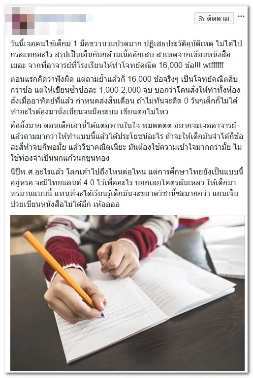 คนเป็นหมอยังตกใจ!! ครูสั่งนักเรียนทำโจทย์ 16,000 ข้อ จนข้อมืออักเสบ
