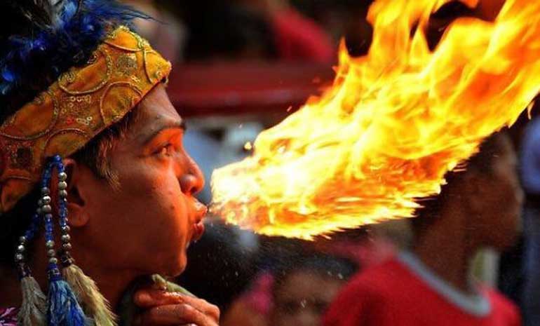 หนุ่มจีนแสดงการพ่นไฟ ที่ภาพนั้นดูเหมือนเขากำลังจูบมังกรไฟอยู่ (อันนี้สวยมาก)