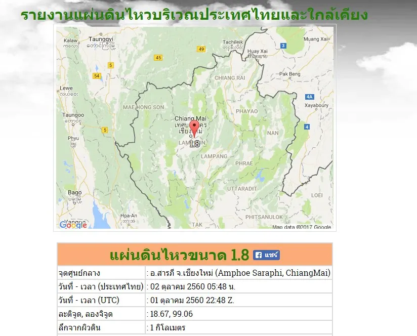 แผ่นดินไหวขนาด 1.8 อ.สารภี จ.เชียงใหม่