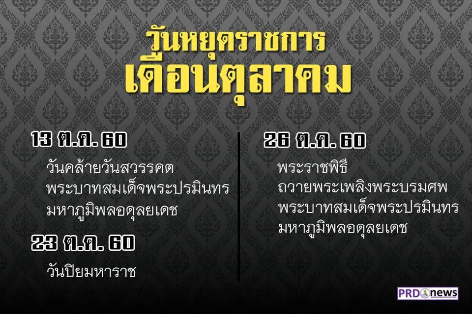 ย้ำอีกครั้ง! วันหยุดราชการเดือนตุลาคม 60