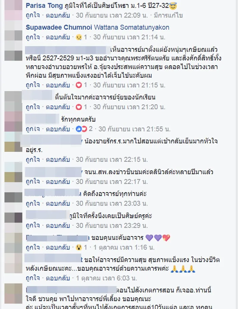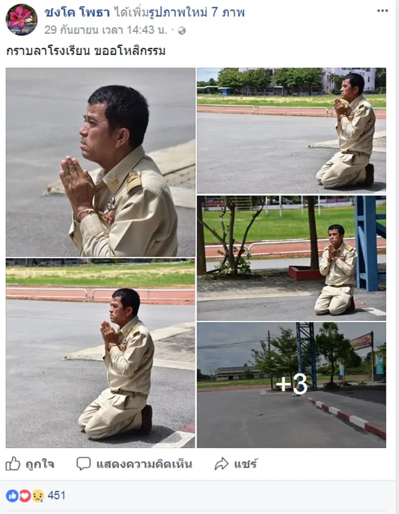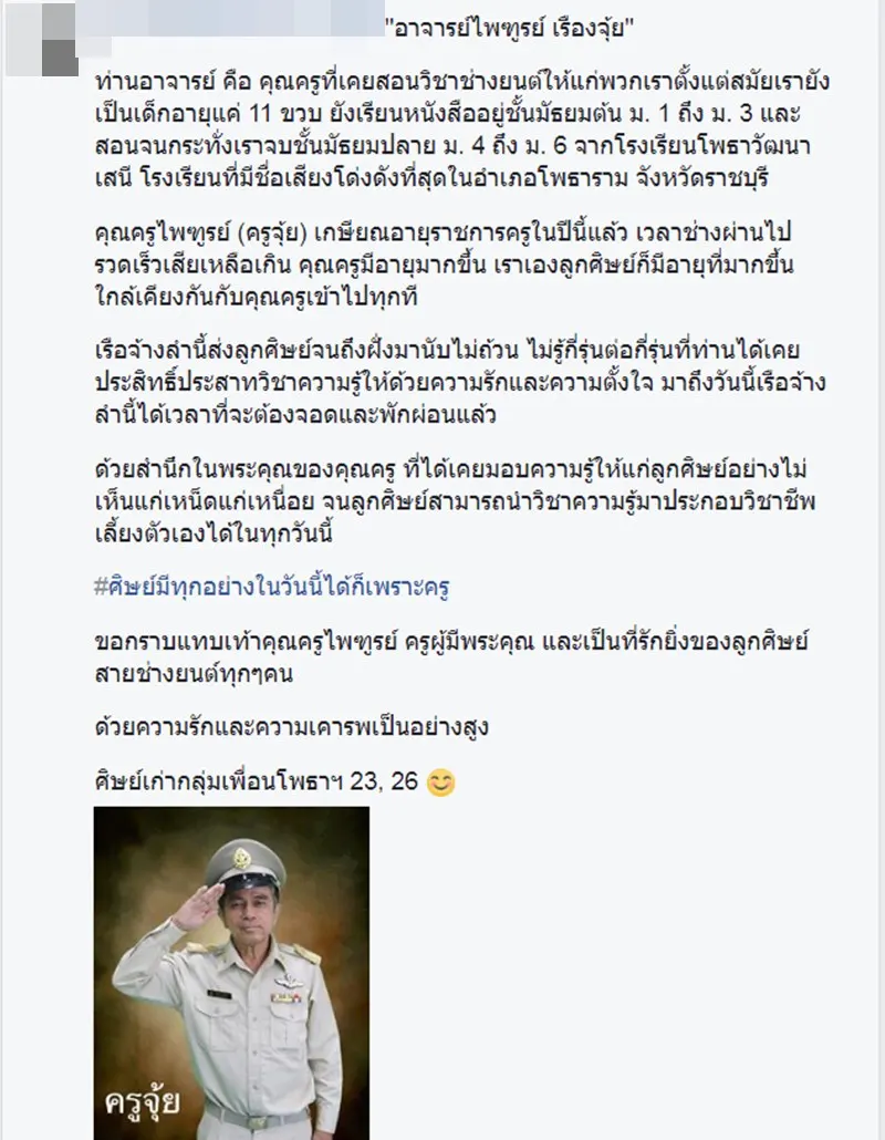 เฟสบุค คุณ ชงโค โพธา โพสภาพ ครูเกษียณอายุกราบลาโรงเรียน ขออโหสิกรรม และมี ศิษย์เก่า คอมเม้นเรื่องราวกล่าวว่า "อาจารย์ไพฑูรย์ เรืองจุ้ย"