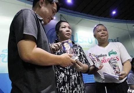 ที่อาคาร 100 ปี ม.ร.ว. เสนีย์ ปราโมช พรรคประชาธิปัตย์ กลุ่มญาติผู้สูญเสียจากการสลายชุมนุม ปี 2553 นำโดยนางพะเยาว์ อัคฮาด แม่ของ น.ส.กมนเกด อัคฮาด พยาบาลอาสาที่เสียชีวิตจากการสลายการชุมนุมฯบริเวณวัดปทุมวนาราม นายพันธ์ศักดิ์ ศรีเทพ พ่อน้องเฌอ ได้เดินเท้าจากวัดปุทมวนารามมายังพรรคประชาธิปัตย์ เพื่อนำคำสั่งศาลอาญากรุงเทพใต้กรณีคำร้องชันสูตรศพ ผู้เสียชีวิต 6 ศพ ที่วัดปทุมวนารามพร้อมด้วยขนมไข่เ...้ย ที่บรรจุในถุงกระดาษพับจากกระดาษหนังสือพิมพ์ที่มีรูปหน้านายอภิสิทธ์ เวชชาชีวะ หัวหน้าพรรคประชาธิปัตย์ มามอบโดยนายศิริโชค โสภา อดีต ส.ส.สงขลา ปชป. เป็นผู้รับไว้
