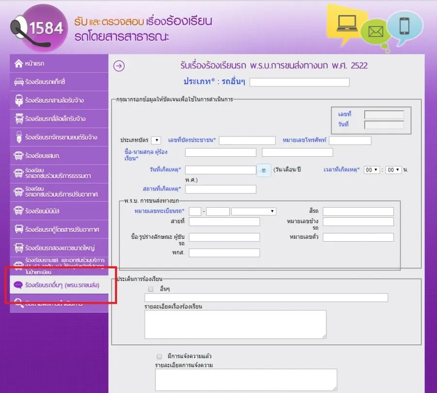 4. เลือกหัวข้อ ร้องเรียนรถอื่นๆ ให้เราเอารูปไปฝากไว้ตามเว็บฝากรูปแล้วก็เอาลิ้งรูปไปแปะไว้ ในข้อความที่เราร้องเรียน