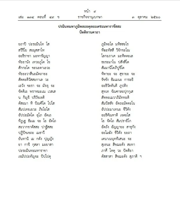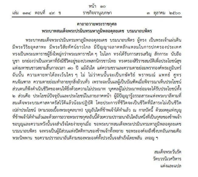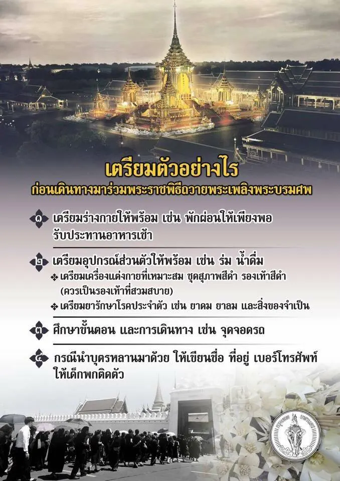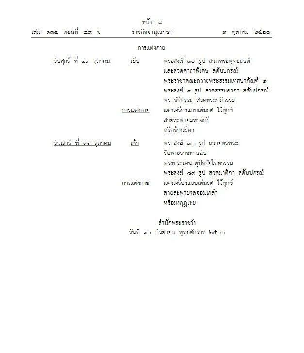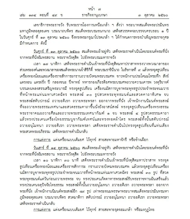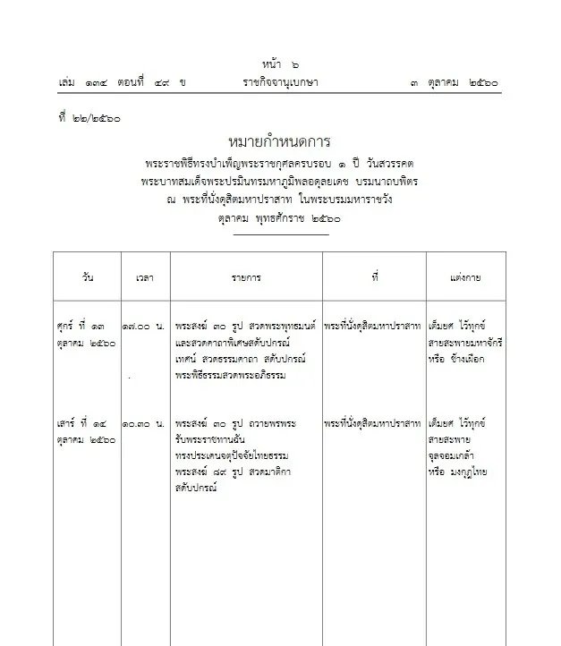 ประกาศหมายกำหนดการ พระราชพิธีทรงบำเพ็ญพระราชกุศลครบรอบ 1 ปี วันสวรรคต ร.9