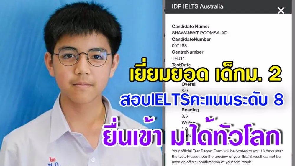 เยี่ยมยอด! เด็กนร.ม.2 จาก รร.ขอนแก่นวิทยา สอบภาษาอังฤษ IELTS คะแนนระดับ 8 ยื่นเข้ามหาวิทยาลัยได้ทั่วโลก