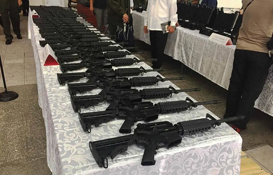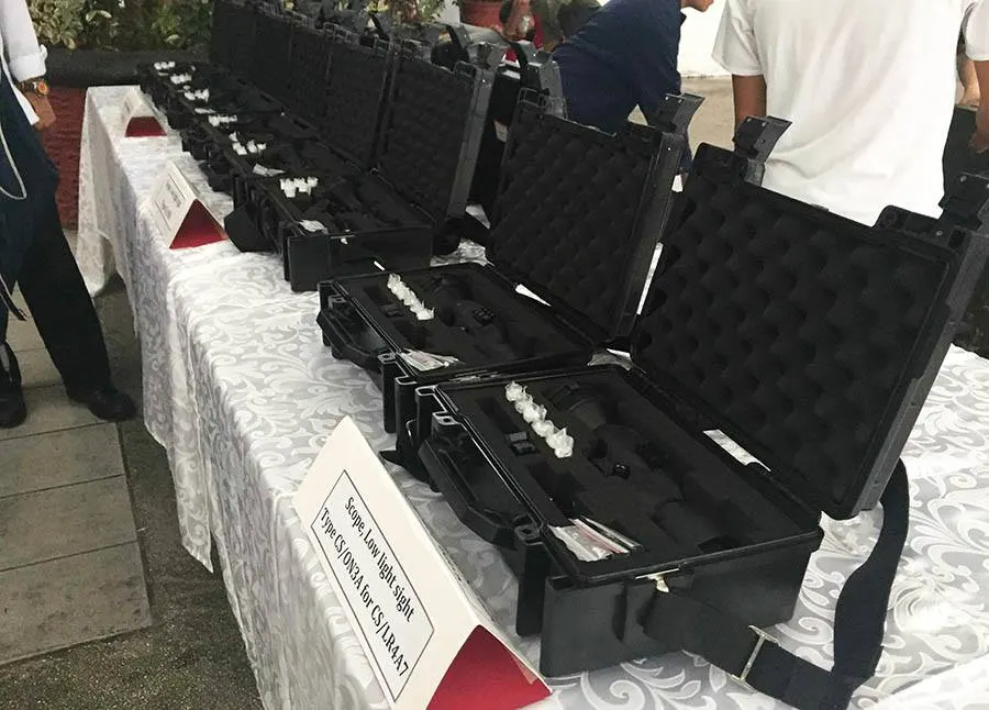 ช่วงเช้าวันนี้ (5 ต.ค.) กระทรวงกลาโหมของฟิลิปปินส์จัดพิธีรับมอบอาวุธยุทโธปกรณ์ มูลค่าราว 30 ล้านหยวน (ราว 150 ล้านบาท) ซึ่งได้รับบริจาคจากจีน ณ กรุงมะนิลา โดยอาวุธทั้งหมดประกอบด้วยปืนไรเฟิล 3,000 กระบอก ลูกกระสุน 3 ล้านนัด และตัวเล็งเป้าติดปืนสไนเปอร์ 90 อัน