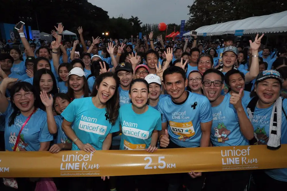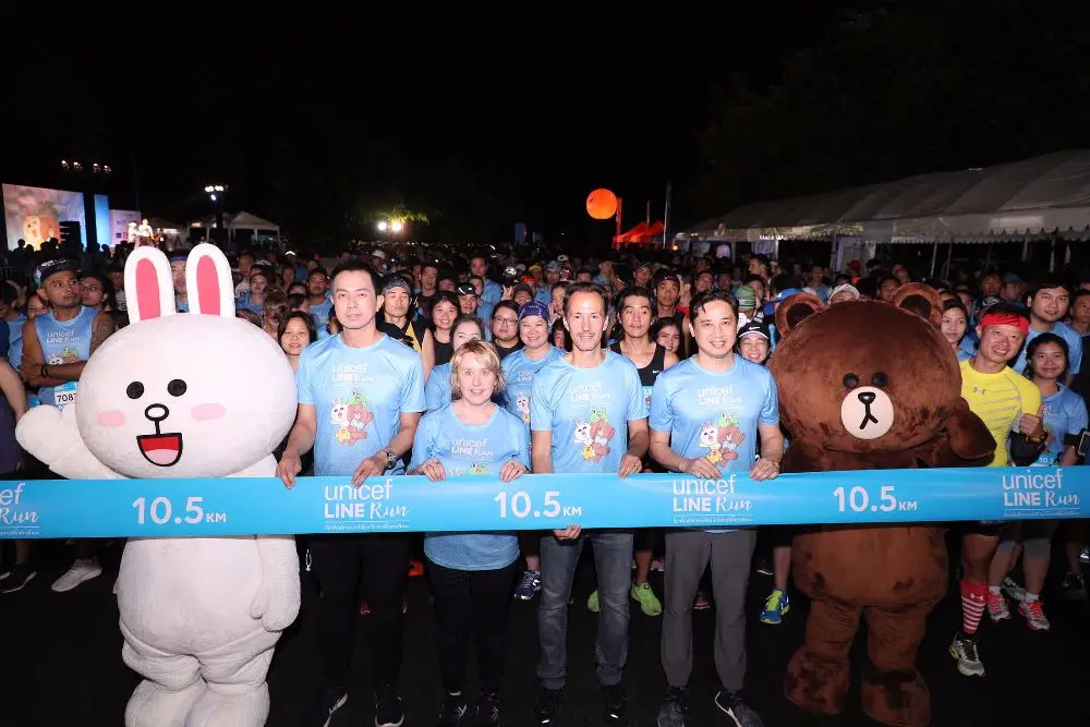 องค์การยูนิเซฟ ประเทศไทย และ LINE ประเทศไทย ได้จัดกิจกรรมวิ่งการกุศล “UNICEF LINE Run วิ่งเพื่อเด็กทุกคนได้มี #โอกาสที่เท่าเทียม” โดยมี Friends of UNICEF ได้แก่ ซิโก้ เกียรติศักดิ์ เสนาเมือง พอลล่า เทย์เลอร์ บัทส์เทอรี่ หนูดี วนิษา เรซ ตลอดจนเหล่าศิลปินคนดัง เช่น โอ อนุชิต สพันธุ์พงษ์ ตุ๊ก ชนกวนัน รักชีพ พร้อมกับโธมัส ดาวิน ผู้แทนองค์การยูนิเซฟ ประเทศไทย และ พิเชษฐ ฤกษ์ปรีชา หัวหน้าฝ่ายองค์กรสัมพันธ์ LINE ประเทศไทย และประชาชนผู้มีจิตกุศลกว่า 8,500 คนร่วมกิจกรรม ณ สวนหลวง ร.9 ตามระยะทาง 10.5 กิโลเมตร 5 กิโลเมตร และ 2.5 กิโลเมตร บรรยากาศในงานเต็มไปด้วยความสุขสนุกสนานที่ได้ออกกำลังกายและช่วยเหลือเด็กๆ ไปพร้อมๆ กัน โดยภายหลังกิจกรรมได้มีการมอบเหรียญดีไซน์พิเศษรูปหมี Brown แก่นักวิ่งที่เข้าเส้นชัย ซึ่งเป็นลิขสิทธิ์เฉพาะการวิ่งครั้งนี้เท่านั้น