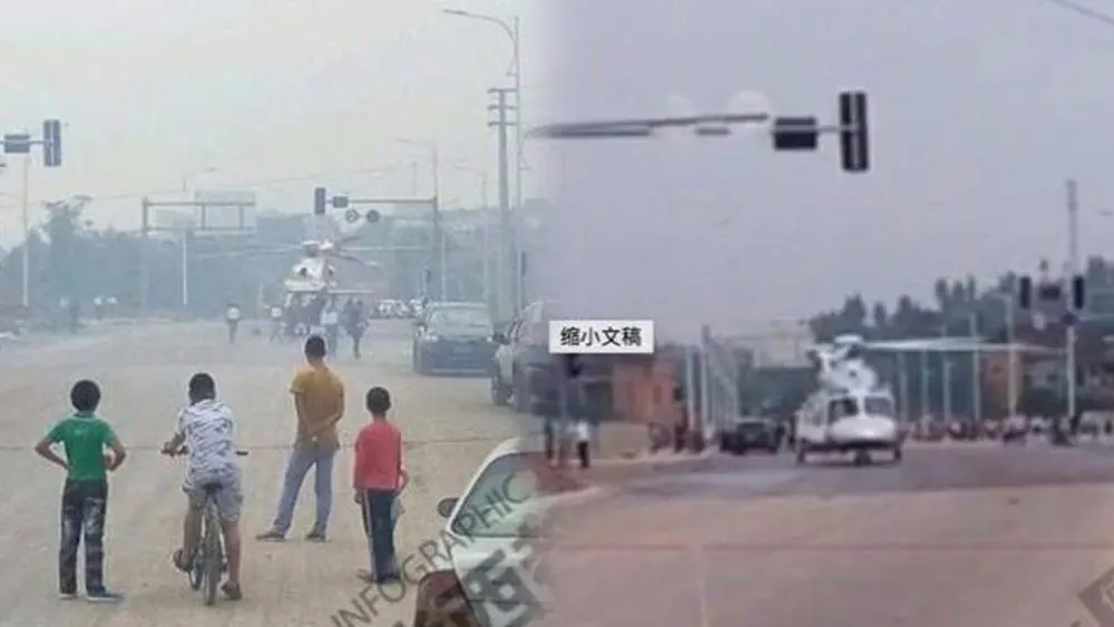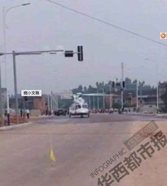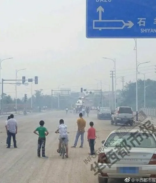 เมื่อวันที่ 2 ต.ค.ที่ผ่านมา ซึ่งเป็นช่วงเวลาวันหยุดยาววันชาติจีน มีชาวเน็ตโพสต์ภาพและคลิปลงบนโซเชียลมีเดียจีนว่า ขณะตนเดินอยู่ริมถนนสายหนึ่งในอำเภออันเยว่ เมืองจือหยาง มณฑลเสฉวน ก็พบว่าทางถูกปิดด้วยอะไรบางอย่าง เมื่อเดินไปอีกสักพักก็พบว่า บนถนนปินเจียงอยู่ดีๆก็มีเฮลิคอปเตอร์ลำหนึ่งลงมาจอดซึ่งน่าจะเป็นสาเหตุที่ทำให้การสัญจรติดขัด