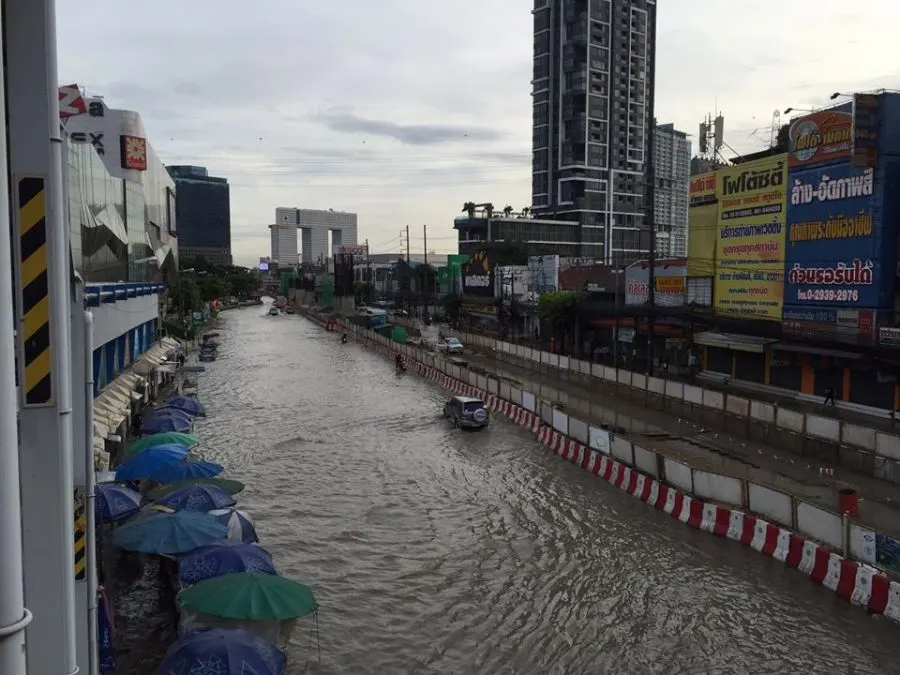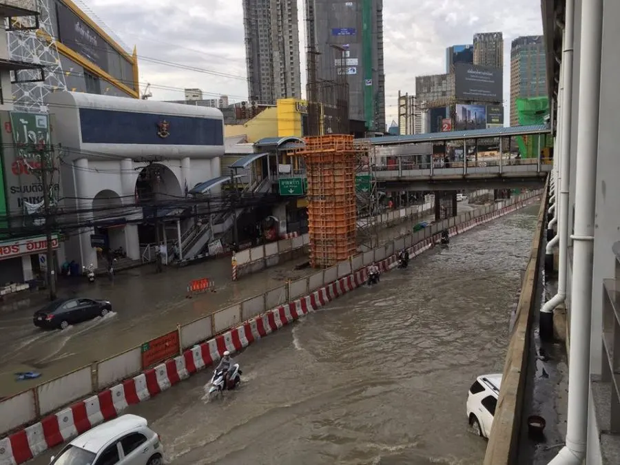 7:05 น้ำรอการระบายถนนลาดพร้าว หน้ายูเนี่ยนมอลล์ ระดับน้ำเท่าฟุตบาท