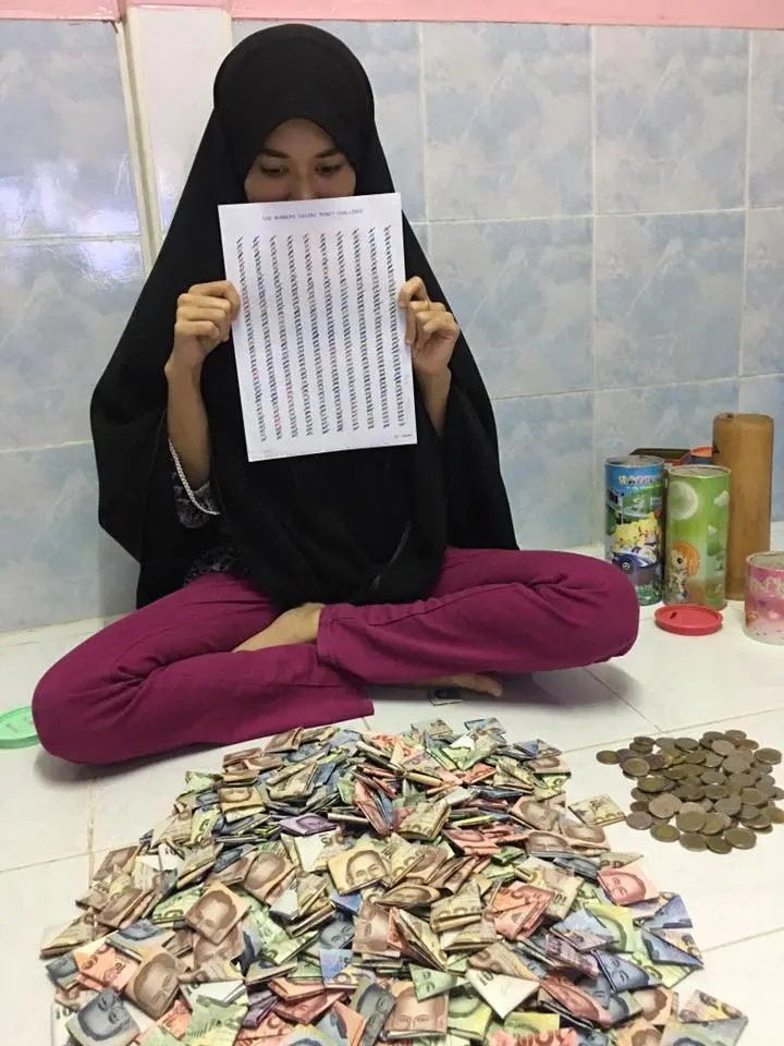 การออมแบบตัวเลขเนี่ยมีแรงบันดาลใจ จากการออมตามวัน 365วันหน่ะ (จำเครดิตไม่ได้) มันจะได้หกหมื่นกว่าๆ (ถ้าจำไม่ผิด) เราก็เลยเอ้อ! ออมเพิ่มไปอีกนิดก็ครบแสน เราก็คำนวณตามสูตร [สูตรผลบวกเลขหลายจำนวนเรียงกันที่เริ่มต้นจาก1] ว่าฉันควรออมถึงตัวเลขเท่าไร ฉันถึงจะได้แสนนึง สรุปเอาเลขสวยๆ450จำนวน ได้แสนนิดๆ ก็โอแล้ววว