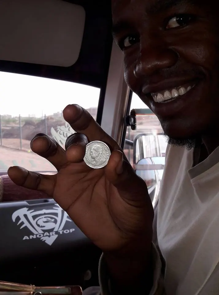 เด็กรถที่ผมนั่งประจำเมื่อเช้า จู่ๆก็ถามว่าผมมีเหรียญของประเทศไทยติดตัวมามั้ย ผมก็ควานหาในกระเป๋าซักพักก็เจอเหรียญห้าบ้านเรา ในใจก็คิดแค่ว่าเด็กรถคนนี้คงอยากได้เหรียญแค่เป็นที่ระลึกแบบอยากได้สะสมไรประมาณนี้ แต่ซักพักเด็กรถก็เอาโทรศัพท์ของเค้ามาเปิดรูปข้างในที่มีพระบรมฉายาลักษณ์ เอามาเปรียบเทียบกับเหรียญห้าที่ผมพึ่งให้ไป.....ผมอึ้ง !!! แล้วเด็กรถก็พูดอะไรซักอย่างเป็นภาษา มุสลิมแล้วเอามือชี้ไปที่บนฟ้า (ประมาณว่าในหลวงทรงสวรรคต แล้วใช่มั้ย) ผมพยักหน้า ไม่น่าเชื่อว่าที่นี่แอฟริกา ดินแดนอันห่างไกลจากไทยสุดขอบโลก จะมีคนรู้จักพ่อหลวงเราถึงขั้นติดตามข่าวสารขนาดนี้ ผมรีบหาเหรียญเพิ่มในกระเป๋าเพื่อแจกคนขับรถและเด็กรถคันอื่น(มี 3 คัน) ที่มาดูแลพวกเราคนไทยใน แอฟริกาเหนือ ประเทศซูดาน ยอมรับว่าขนลุก ในพระบารมี พ่อหลวงครับ..
