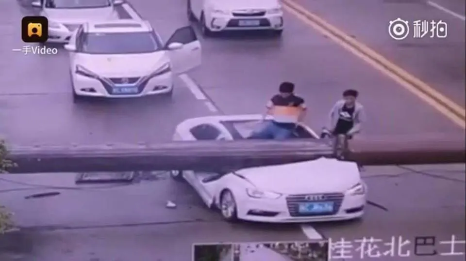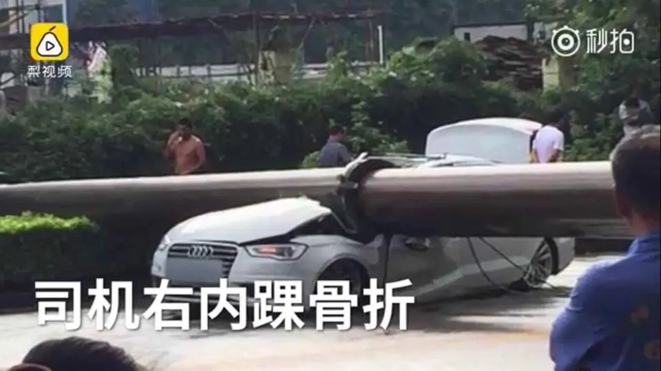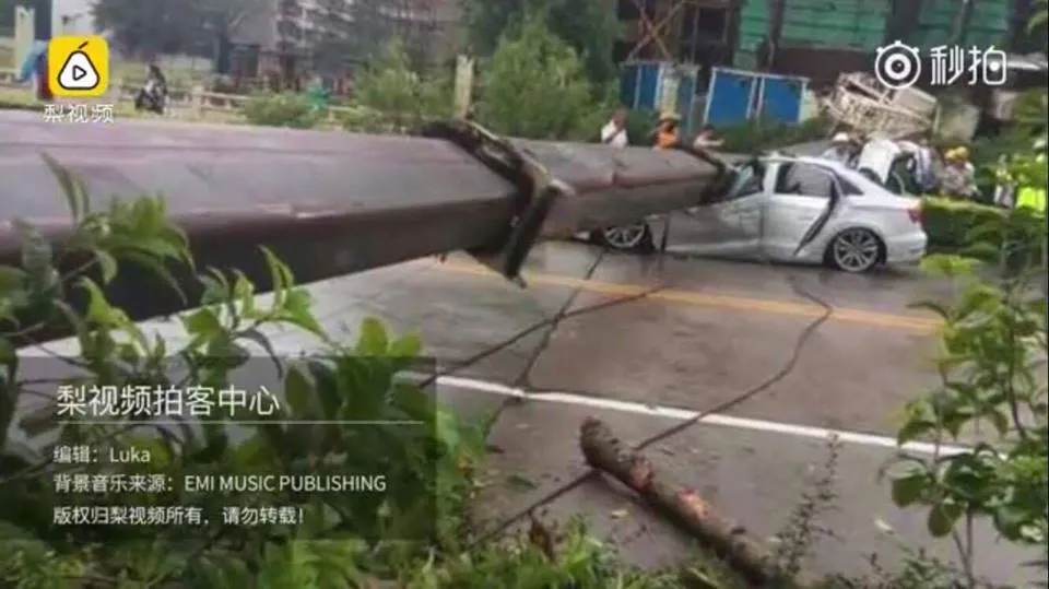 ชายหนุ่มชาวจีนหวิดดับสยองหลังถูกแขนเครนขนาดใหญ่ล้มทับรถยนต์ยี่ห้อหรูที่เขากำลังขับอย่างช้าๆ อยู่บนถนนสายหนึ่งของเมืองจูไห่ มณฑลกวางตุ้งทางตอนใต้ของจีน เมื่อวันอังคาร (17 ต.ค.) ที่ผ่านมา โชคดีที่เขาไม่ได้รับบาดเจ็บสาหัสจนถึงแก่ชีวิตและสามารถปีนออกจากตัวรถที่พังยับเยินผ่านทางหลังคาได้