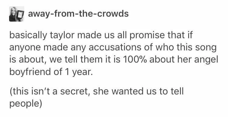 เพลงนี้เทย์มีส่วนร่วมในทุกๆอย่าง และเพลงนี้ยังแต่งถึง Joe Alwyn แฟนคนปัจจุบันของเทย์เลอร์