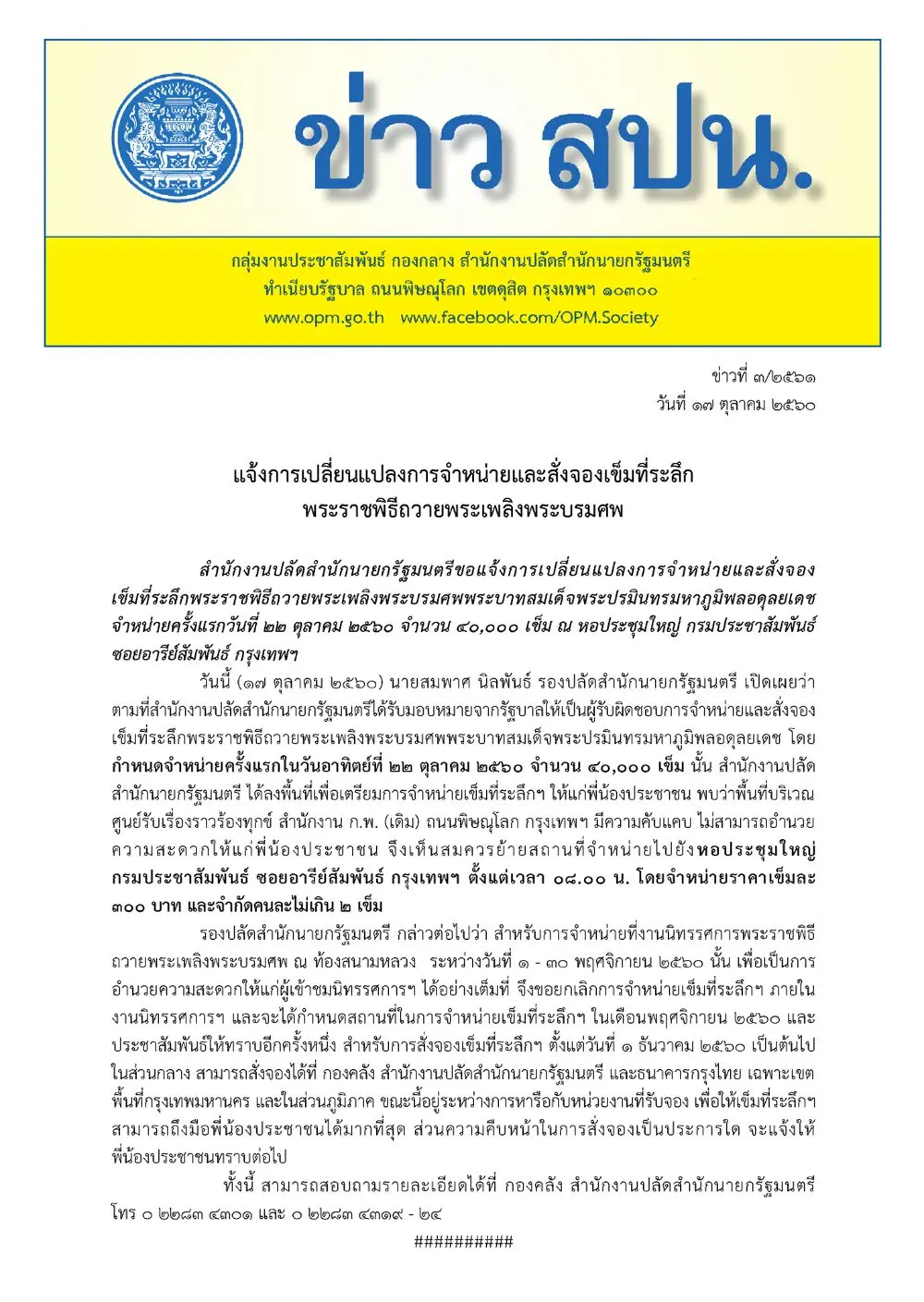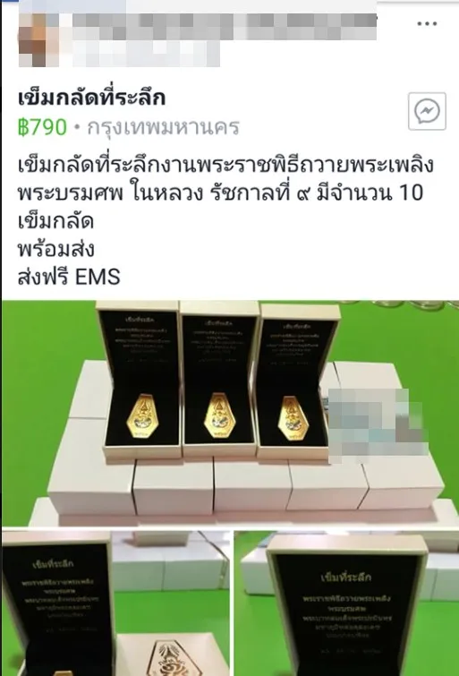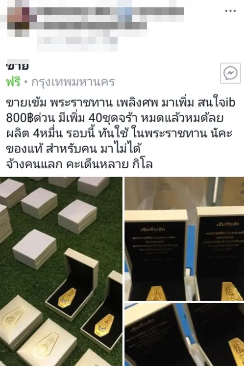 ตอนกระปุกก็ทีนึงละ รอบนี้เข็มกลัดที่ระลึกถวายพระเพลิงฯ จากที่รัฐบาลผลิตมาขายอันละสามร้อย และมีผลิตจำนวนมหาศาลเพียงพอสำหรับทุกคนแน่นอน มีคนกว้านซื้อ เอาไปขายโก่งราคาอันละ 800 ละครับ แนะนำพ่อแม่พี่น้อง ไม่ต้องไปซื้อมัน อดใจรอกันนิดนึง ได้มีในครอบครองทุกคนแน่นอน รัฐเขาผลิตเผื่อไว้เพียงพอ และเงินที่พ่อแม่พี่น้องซื้อตรงจากรัฐก็จะถูกนำไปช่วยเหลือประชาชนที่เดือดร้อน ถูกนำไปพัฒนาสาธารณูปโภคอื่นๆอีกมากมาย แต่ถ้าพ่อแม่ซื้อจากอิพวกนี้ เงินก็อยู่กับพวกมันนั่นแหละ